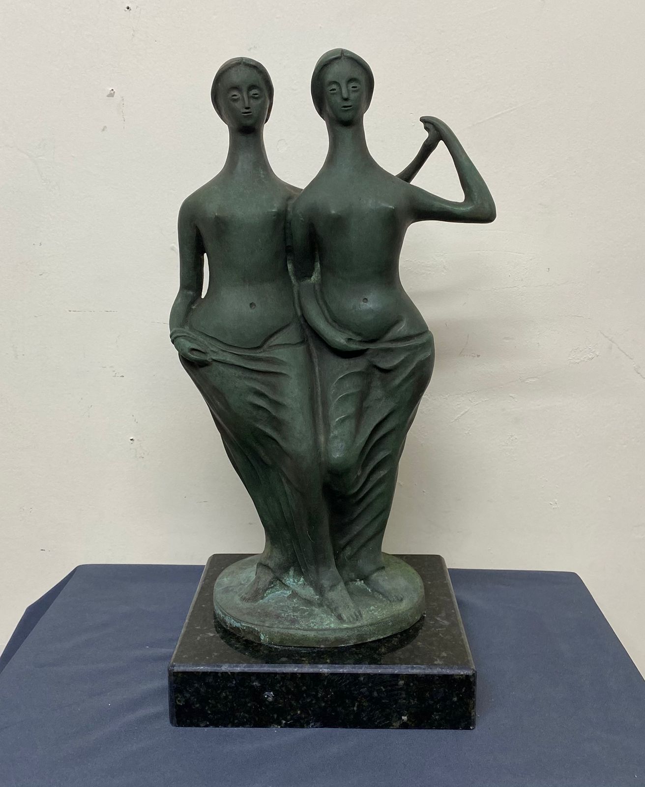 ALFREDO CESCHIATTI – Gêmeas. Escultura em bronze patinado apoiado sobre base em mármore negro. Medidas 54x25x25