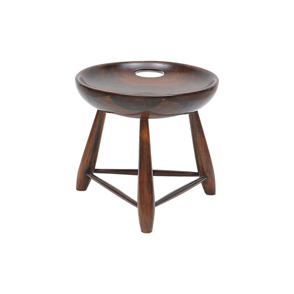 Banco Mocho 1954 WA Antiquarios 13 de maio de 2025 No comments Banco Mocho 1954 (Sérgio Rodrigues)Estrutura em jacarandá, com assento em peça única torneada e esculpida, três pés torneados e acabamento em verniz preto-piano. Altura 40 cm Largura 45 cm Profundidade 45 cm