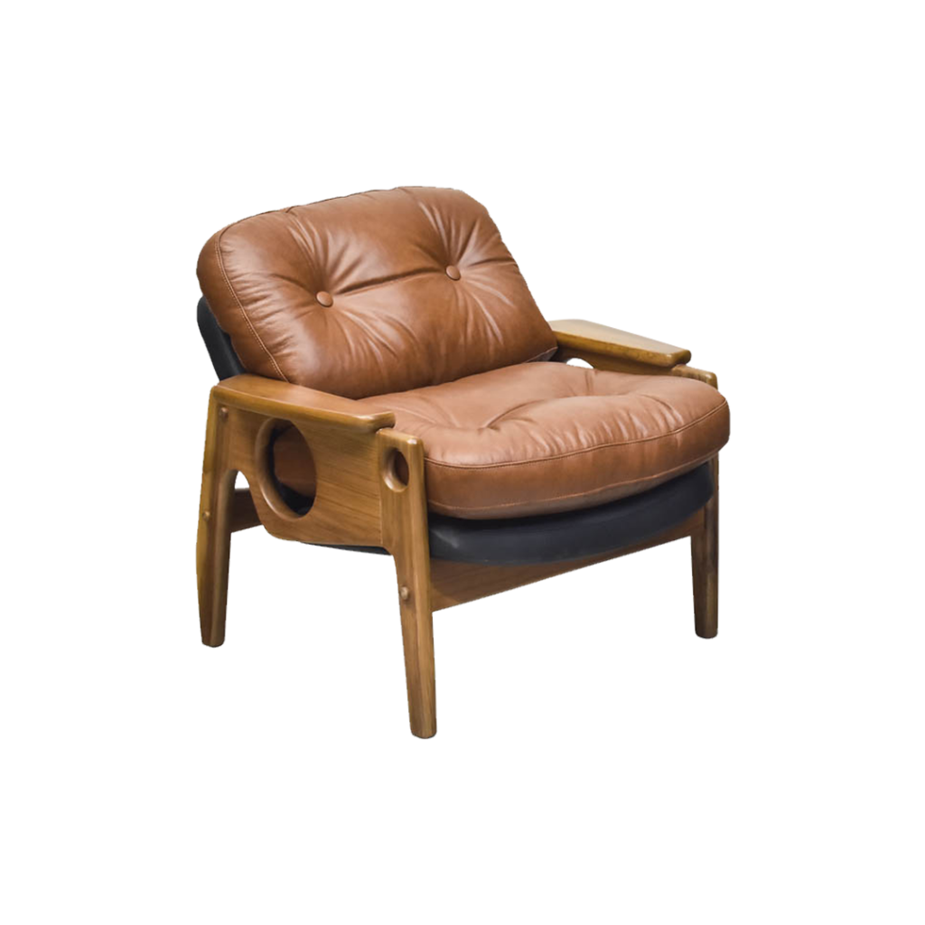 Sérgio Rodrigues – Tetê WA Antiquarios 13 de maio de 2025 No comments Sérgio Rodrigues – Tetê. Par de poltronas com estrutura em freijó, assento, encosto e almofadas soltas em couro caramelo , apresenta carimbo de frábrica. Med.: 70 x 85 x 67 cm