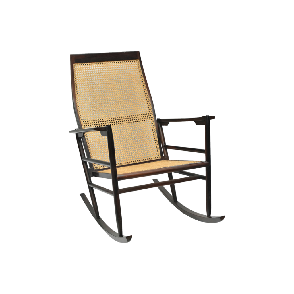 Belíssima Cadeira de Balanço – Anos 60 WA Antiquarios 16 de maio de 2025 No comments Belíssima Cadeira de Balanço – Anos 60 (Joaquim Tenreiro)Em jacarandá com assento e encosto em palhaMedindo 97X71X63 cm