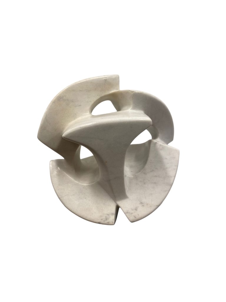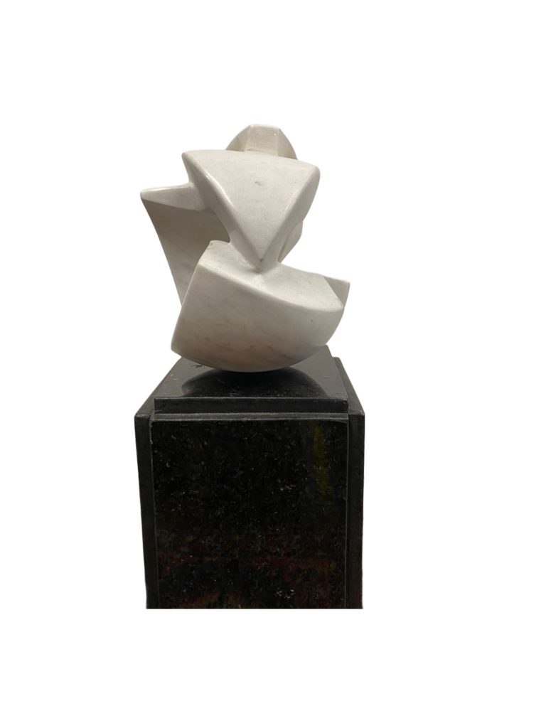 Bruno Giorgi Meteoro, Escultura Contemporânea em Mármore Branco Apoiada Sobre Base de Mármore Negro. Med: 16x16x16 cm(Sem Base) 32x16x16 cm ( Com Base).